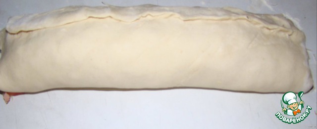 Сворачиваем тесто рулетом .не прижимая.Просто катим Защипываем края