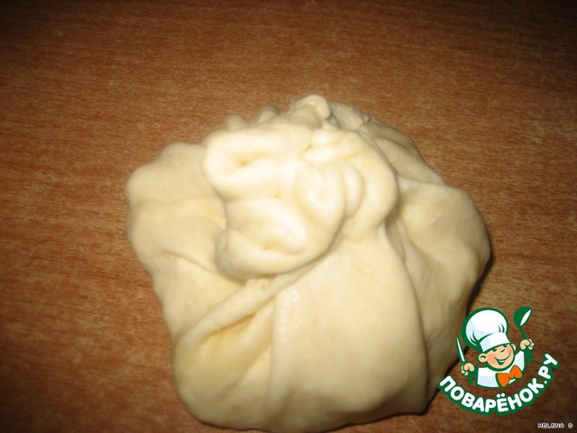 В центр кладем шар начинки, размер которого определяем так - края лепешки должны собраться над этим шаром и защипнуться.