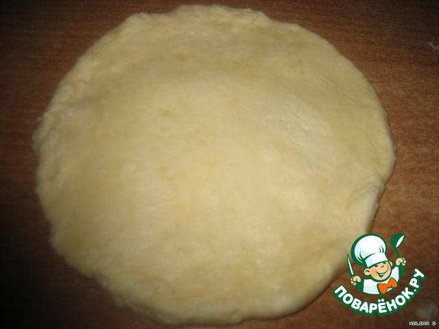 Полученный круглый пирожок кладем защипом вниз и прокатываем скалкой до диаметра вашей сковородки.
