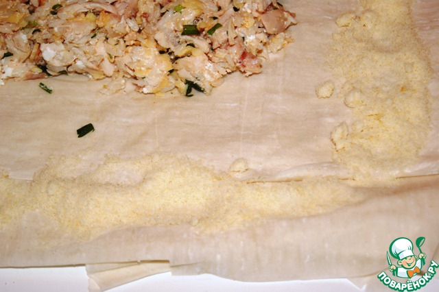И скрутить края валиком, заворачивая в них сыр, прямо до самой начинки.