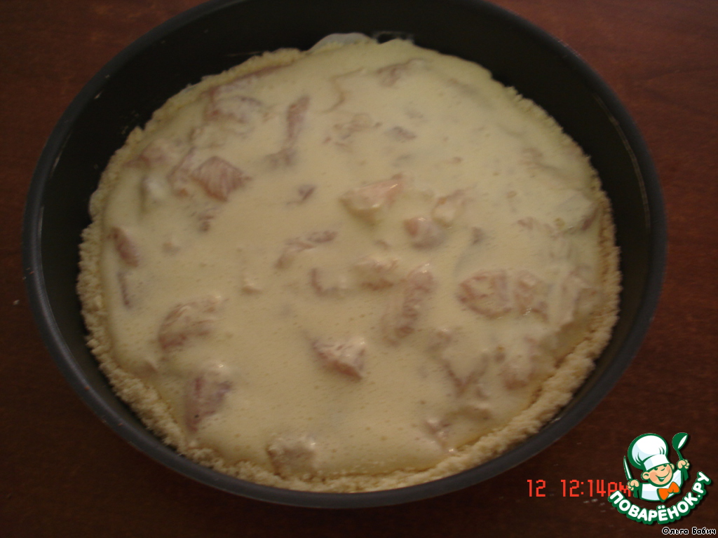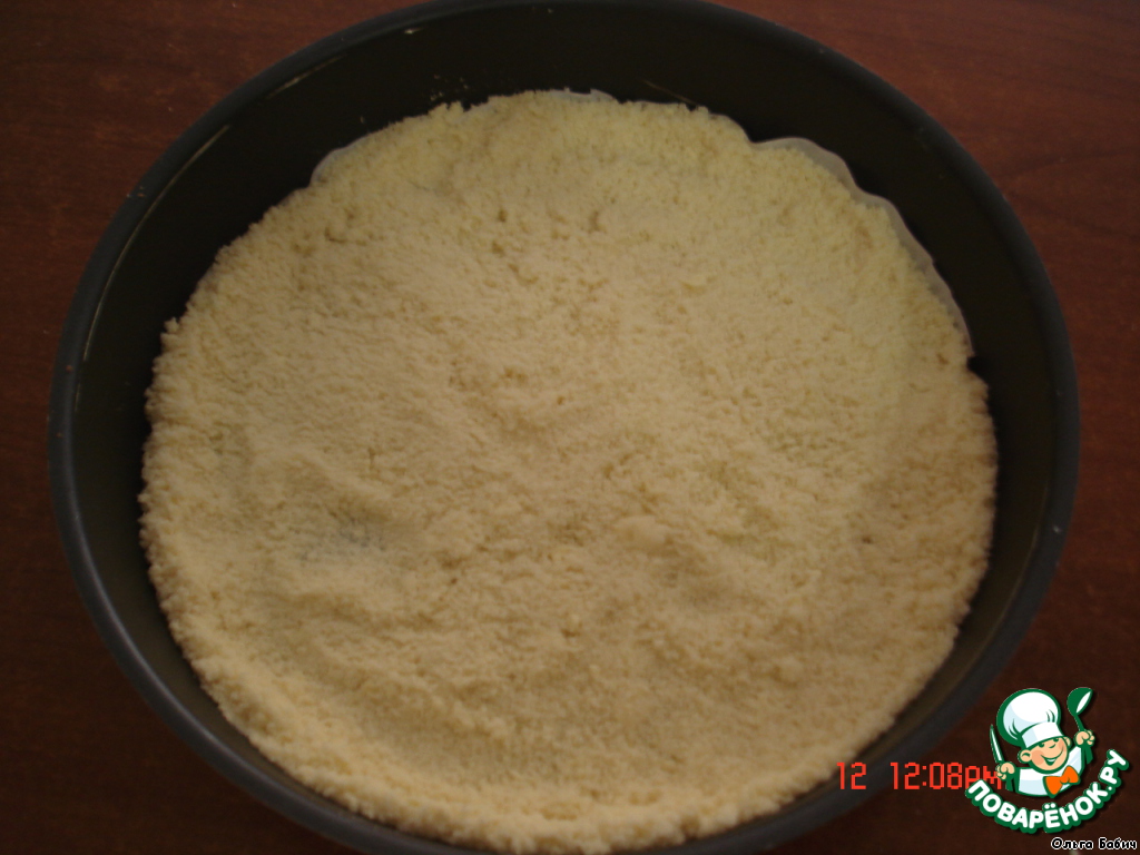 Форму номером 22 застелить бумагой, насыпать 3/4 теста.