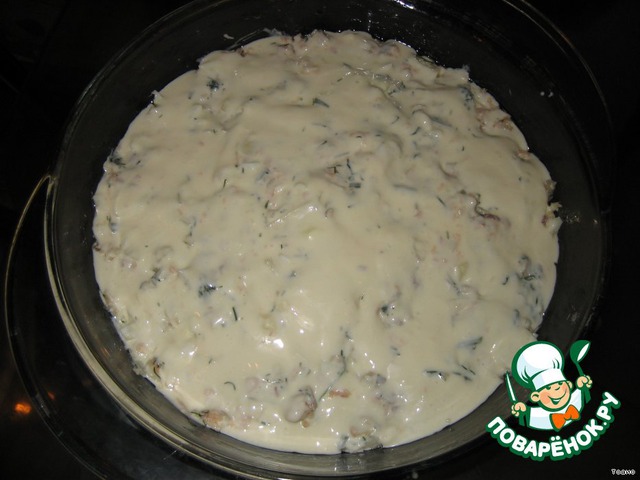 Заливаем оставшимся тестом и отправляем в духовку при 180 градусах где-то на час.
