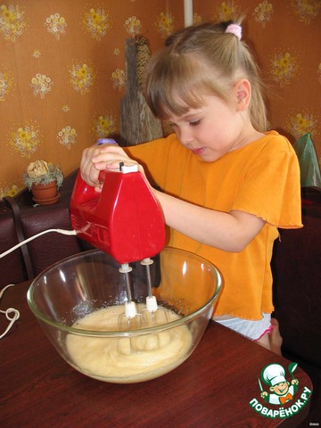 Размешать. Если влить чайную ложку коньяка, то в результате испарения алкоголя тесто получается воздушней.