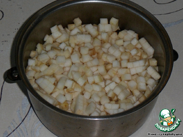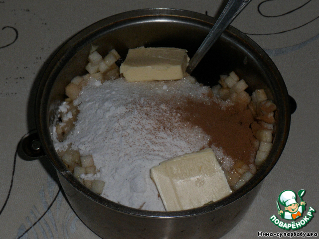 Положить в кастрюльку, добавить лимонный сок, сахар, ванильный сахар или ванилин, крахмал и корицу. Нагревать на среднем огне, все время помешивая, пока масса не загустеет (крахмал должен завариться). Выключить огонь, начинку остудить. Должна сказать, что на мой вкус начинка оказалась очень сладкой, думаю, что половины стакана сахара вполне хватит.