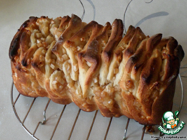 Выпекать при 180*С в течение 45-50 минут до появления красивой румяной корочки. Готовый пирог вынуть из духовки, дать ему немного отдохнуть, а затем извлечь из формы.