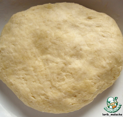 Тесто раскатать на столе, посыпанном муке, достаточно тонко - примерно в 0,5-0,7 см толщиной. Уложить пласт на противень, смазанный маслом. Я использовала форму для выпечки размером 30x20 см.