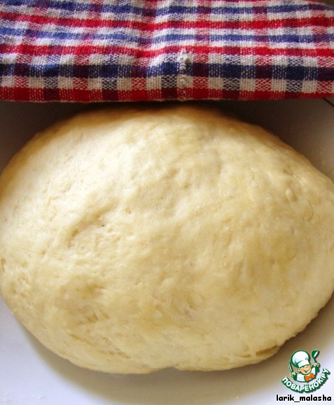 Тесто положить в глубокую миску, накрыть пленкой и поставить в теплое место на расстойку примерно на 1,5-2 часа. Тесто должно значительно увеличиться в размере.