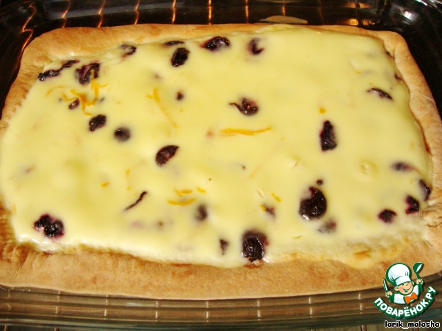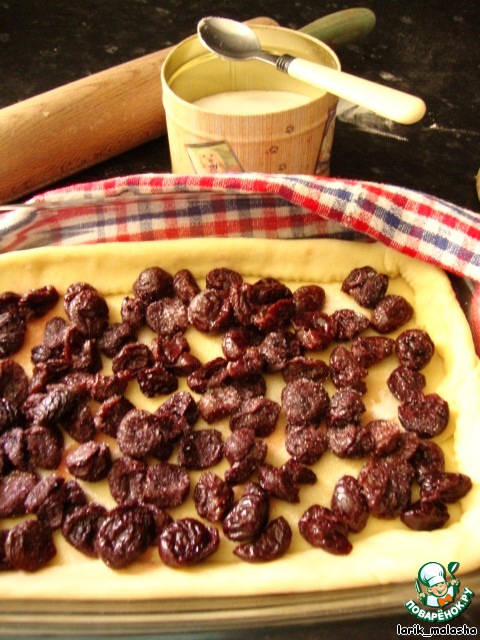 | Отличный пирог из дрожжевого теста с начинкой из вишни и нежной сметанной заливкой. Отличный способ разнообразить фруктовые пироги. Рецепт этого блюда был размещeн на сайте в 2008 году пользователем Кристиша под названием "Черри пай" и иллюстрирован мной в рамках акции «Раскраски». |