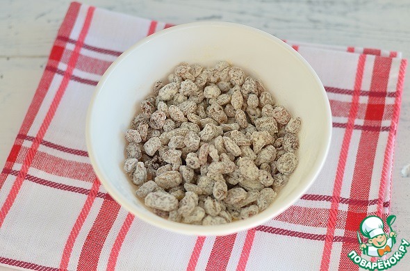 Обвалять изюм с 1 ст. л. муки от общего количества.
