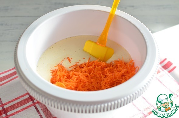 Добавить в яичную массу морковь. Потихоньку перемешать лопаткой.