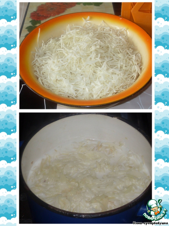 Капусту тонко нашинковать и отварить в подсоленном молоке. Она не должна стать слишком мягкой. Молоко слить, а капусту охладить.