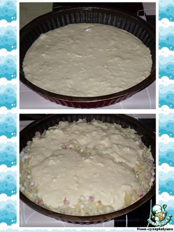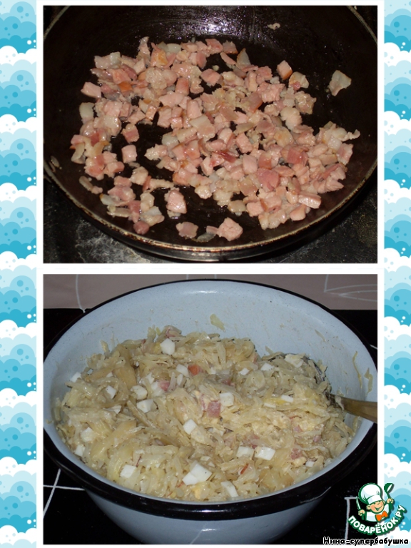 Слегка обжарила бекон и добавила в начинку. При желании можно начинку поперчить. Добавить мелко нарезанной зелени.