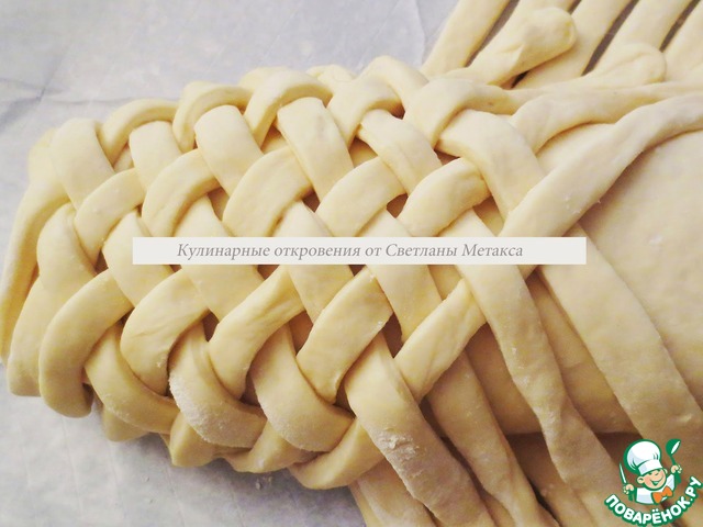| Моя любимая тема - дрожжевая выпечка. Всегда пробую и одновременно учусь работе с тестом. Мне нравится экспериментировать и печь пироги интересной формы. Хочется, чтобы выпечка была не только вкусной, воздушной и нежной, но и при этом имела красивый внешний вид. Такой пирог украсит любой праздничный стол. Начинка может быть какая угодно: сладкая, мясная, рыбная, овощная. Формировать ( плести ) пирог одно удовольствие и это совсем не сложно, как кажется сначала. Попробуйте, я уверена у Вас получится! |