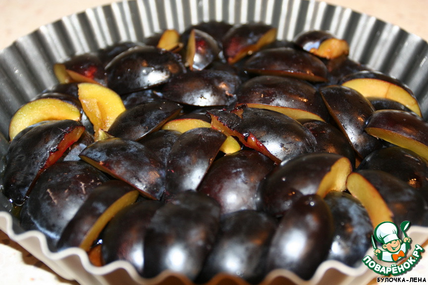 Хочу обратить внимание, что чем сочнее слива, тем больше жидкости из нее выделяется во время приготовления. Поэтому рекомендую в духовку подставлять под пирог поддон, чтоб в него капала жидкость.