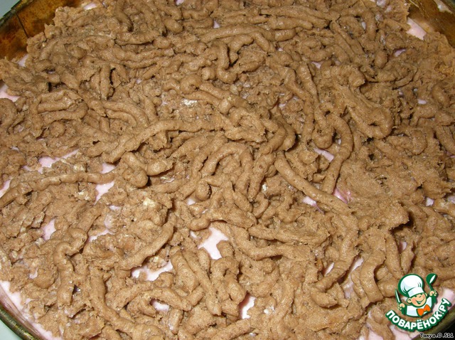 Затем на начинку равномерно натереть на терке вторую часть теста.