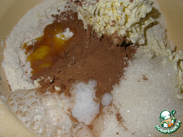 Хорошо перемешать, замесить тесто, разделить на 2 равные части и в холод на 1 час.