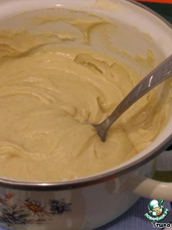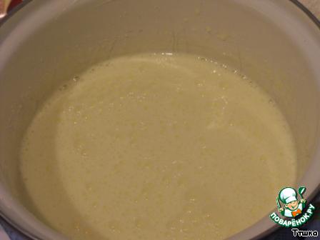 Яйца взбить с сахаром. Добавить сметану и взбивать до полного растворения сахара. Сливочное масло растопить и добавить в яичную массу.