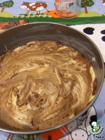 Форму смазать маслом. По 1 ст.л. выкладывать на середину формы, поочередно, темное и светлое тесто. Разровнять.