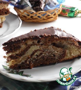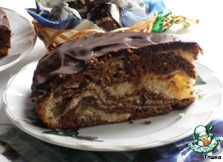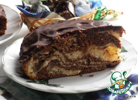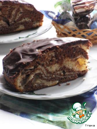 Выпекать в разогретой до 170 градусов духовке в течении 30 минут. Для приготовления глазури растопить шоколад с 1 ст.л. коньяка и 1 ст.л. молока. Полить глазурью остывший торт. Приятного аппетита!