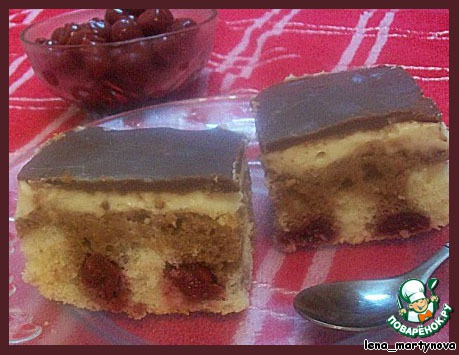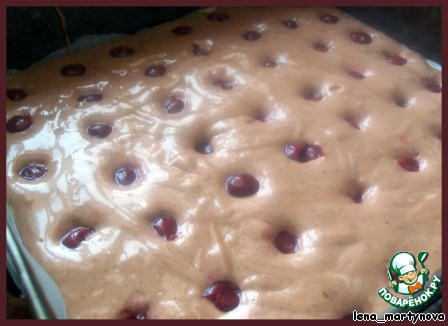Здесь моё небольшое отступление - вишен должно быть немножко больше, чем у меня. Пирог будет красивее и вкуснее.