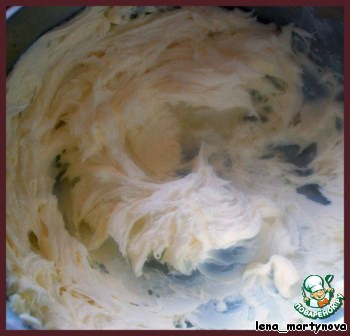 Затем понемногу добавлять остывший крем и взбивать, пока масса не станет однородной.