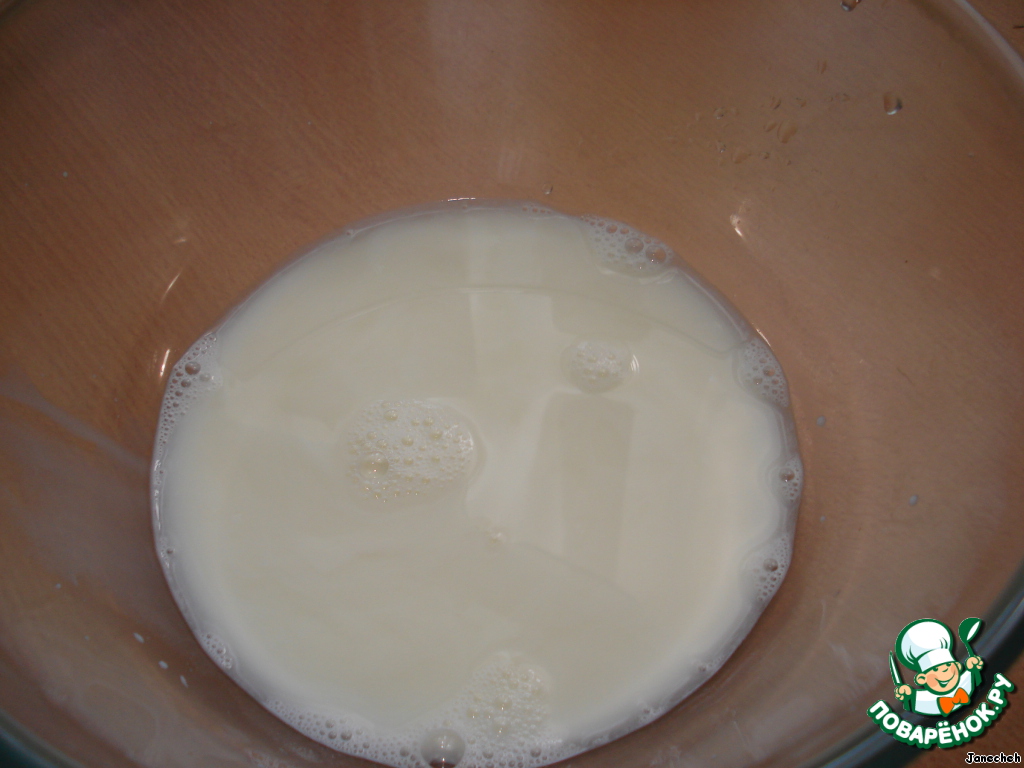 Сначала сварим несколько картофелин, предварительно их, конечно, почистив и помыв. Отвар сольем в стакан. Смешаем теплое молоко и картофельный отвар. Добавим соль и сахар.