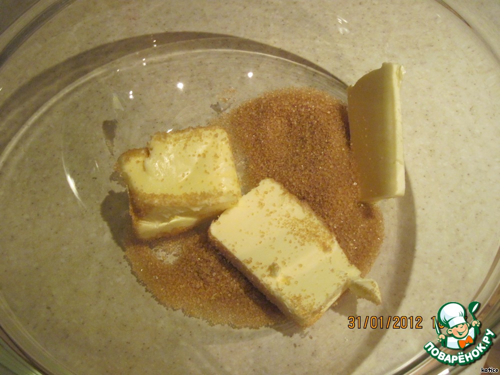 Мягкое масло растереть с сахаром (у меня коричневый)