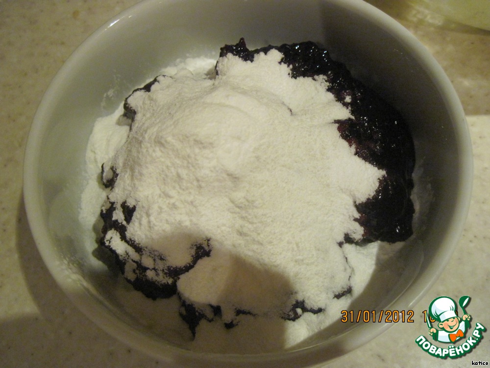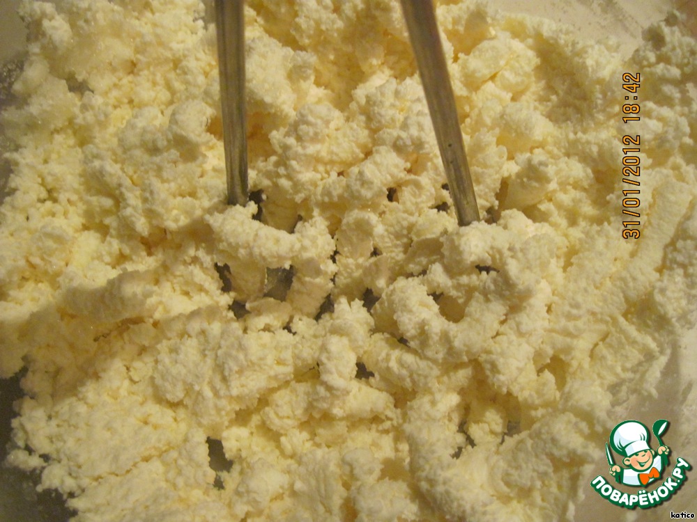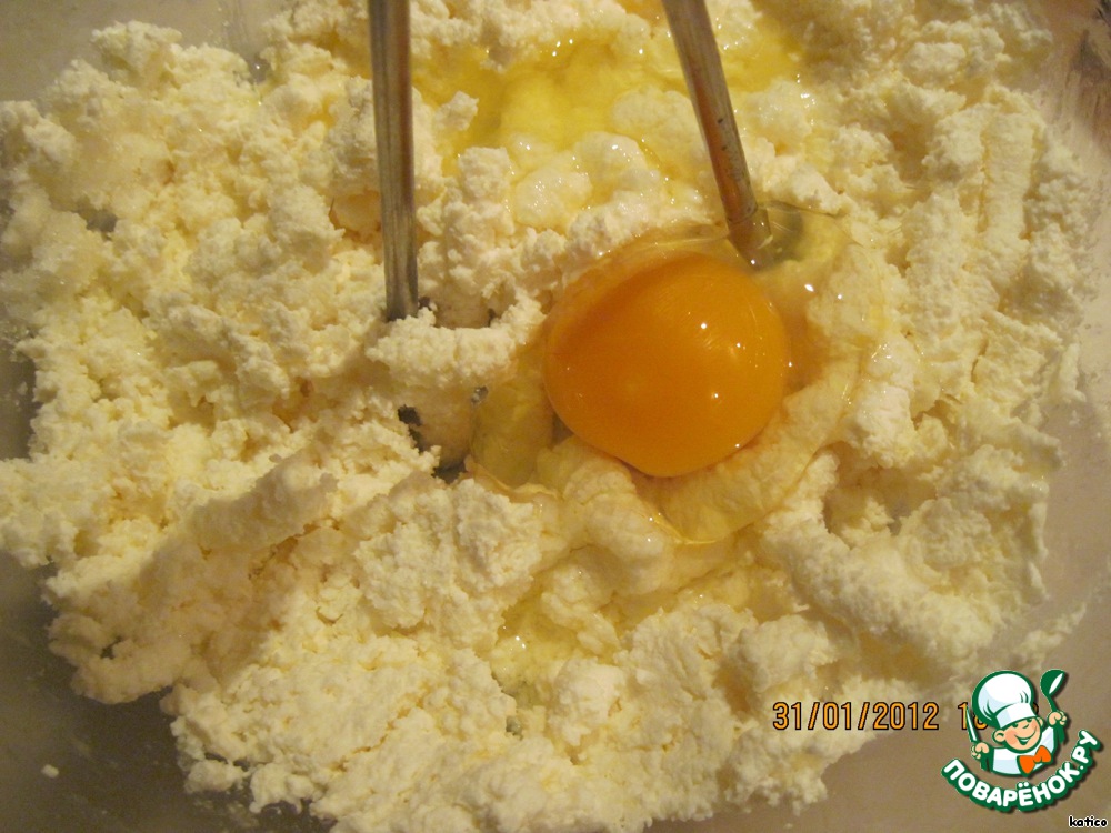 Творог размять с сахаром, добавить 2 ч.л. крахмала