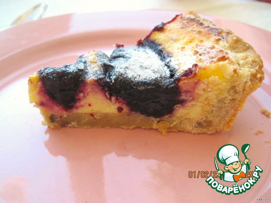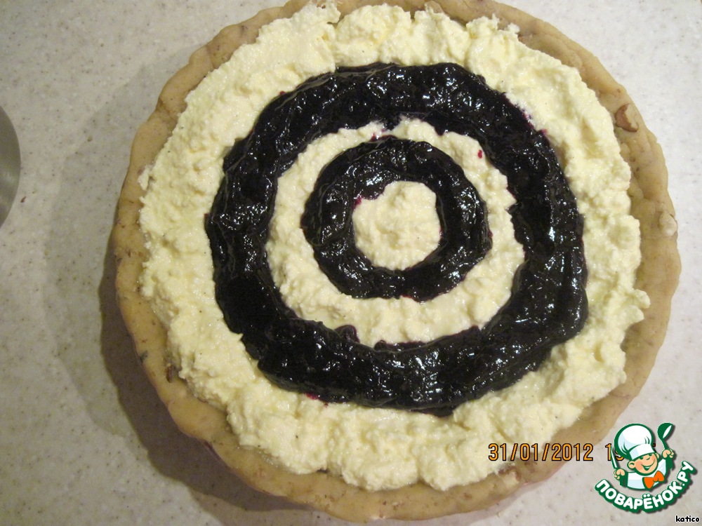 | Еще один рецепт про творог и варенье. "Фишка" этого пирога в оформлении и в том, что начинка из джема не растекается, и пирог прекрасно сохраняет форму при нарезке. Хрупкая песочная основа с орехами, на ней нежный творог и фруктовый джем (у меня черная смородина). Пирог ароматный, вкусный и очень домашний. Если интересно, заходите! |