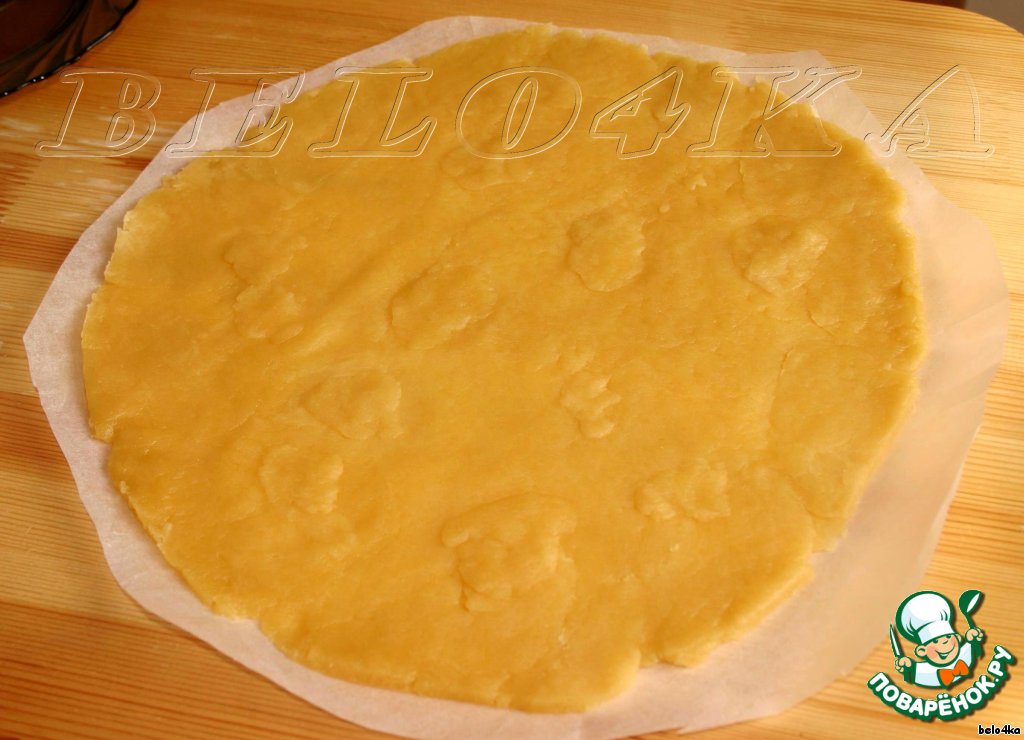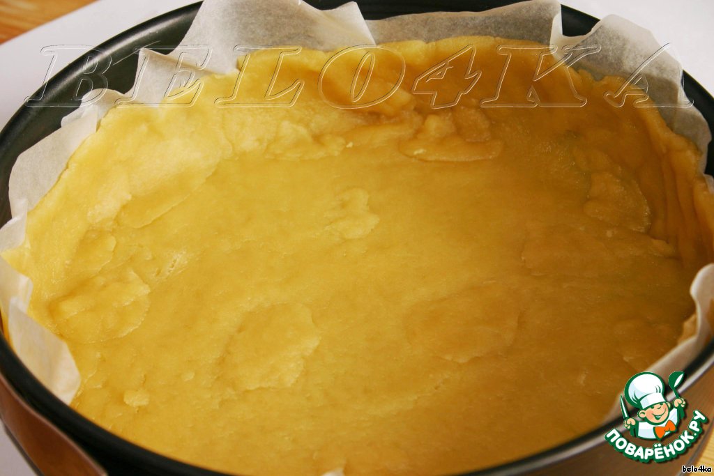 Дно формы застелить пергаментом и выложить тесто, сделав высокие бортики.