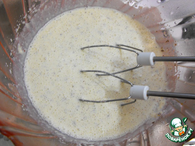 На малых оборотах миксера перемешиваем все ингредиенты заливки. Взбивать не надо - только перемешиваем.