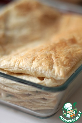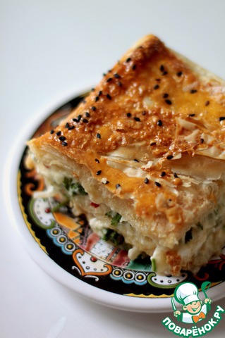 Про пирог вспомнили вчера совершенно случайно, рассматривая магниты на холодильнике из поездок!)) Про него я помнила, что он был из теста фило, хрустящий и сочный одновременно, но рецепт не записывала и с поваром не общалась, но тут о чудо, я вспомнила про Гордона Рамзи и его раздел Греческая кухня. В нем как раз был рецепт этого пирога!))) Привожу все, как у Рамзи, за исключением того, что заменила тесто фило на слоеное. Пирог получился сочный, с хрустящей корочкой, остренький и такой солнечный.