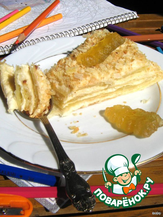 | Вкусный, нежный, необычный пирог из слоеного теста. Рецепт этого блюда был размещен на сайте в 2008 году пользователем Murchela под названием "Старопольский пирог", и иллюстрирован мной в рамках акции "Раскраски". |