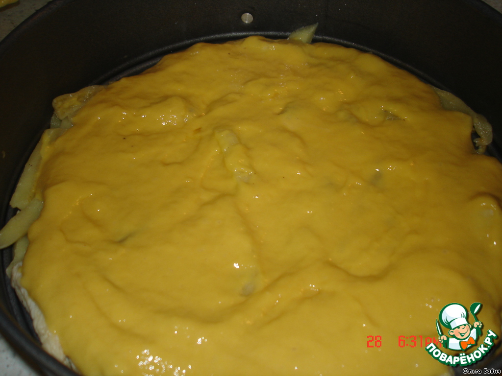 Укладываем в форму часть начинки, тесто, оставшиеся начинку и тесто и ставим в предварительно разогретую(!) духовку на 30-40 минут, при 180 град.