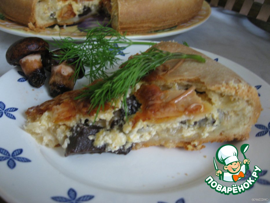 | Осень… На огородах дозревает тыква, в садах поспевают яблоки… А в лесу? Что можно осенью принести домой из леса? Конечно, грибы! В выходные муж с сыном после прогулки по лесу принесли много грибов. А сегодня в гости к нам приехали родители, и мне захотелось приготовить им не просто жареные грибы или картошку с ними, а нечто необычное и вкусное. Пирожок свой назвала так не просто. По вкусу он, действительно, напоминает жульен, но в «упаковке» из очень вкусного теста. Честно признаться, тесто и идею я позаимствовала у поварeнка Масяся, рецепт «Пирог-суфле с помидорами»(за что ей огромное спасибо!), но внесла в него некоторые изменения. |