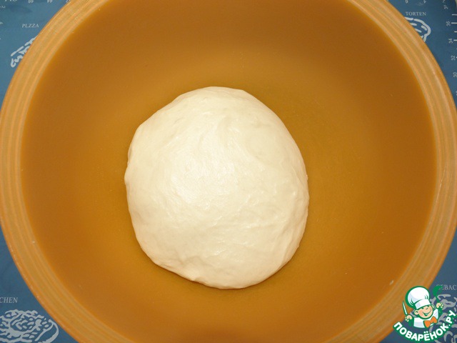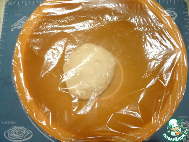 Когда тесто замесится, перекладываю его в миску, накрываю пленкой и кладу в немного нагретую духовку для подъема.