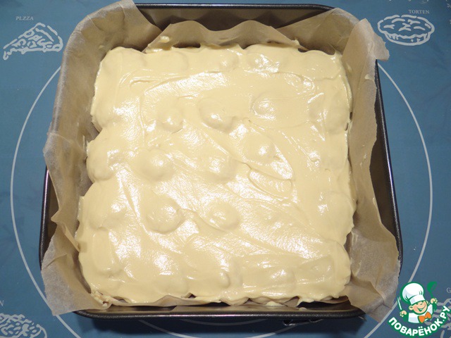 Аккуратно ложкой выкладываю по всей поверхности крем,