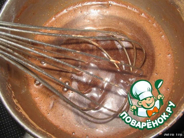 3 ст. ложки молока + 2 ст. ложки сахара + 2 ст. ложки какао + 30 гр. сливочного масла. Всё тщательно смешать и варить до закипания, при постоянном помешивании. Глазури получится больше, чем требуется, можно ею полить пирог при подаче.