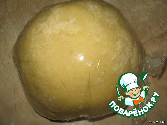 Сформировать шарик, завернуть его в пищевую плёнку и положить в холодильник на 30 минут.