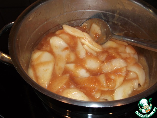 Вводим жидкий пудинг в грушeвую смесь и ещё раз доводим до кипения.