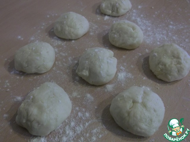 Мягкое тесто делим на 8 частей.