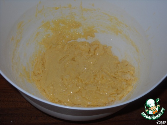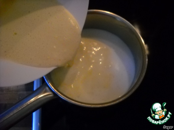 Добавляем небольшое немного молока (100 мл), хорошо размешиваем. Остальное молоко ставим нагреваться и, когда оно станет теплым, добавляем яично-сахарно-мучную смесь.