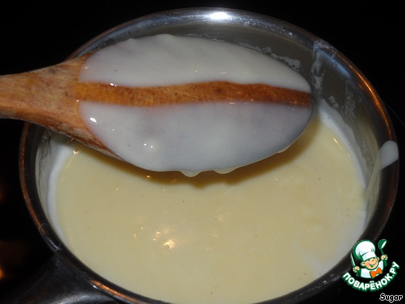 Варить, постоянно помешивая, до загустения. Крем нам нужен достаточно густой.