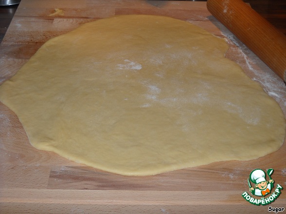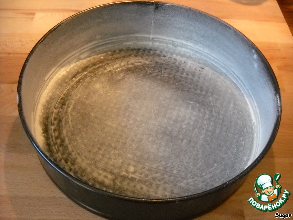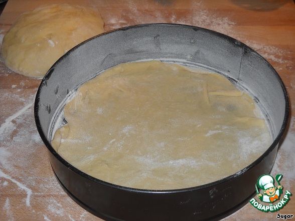 Тесто вымешиваем, 1/4 часть раскатываем и выстилаем дно формы.