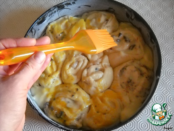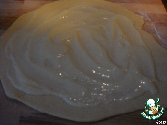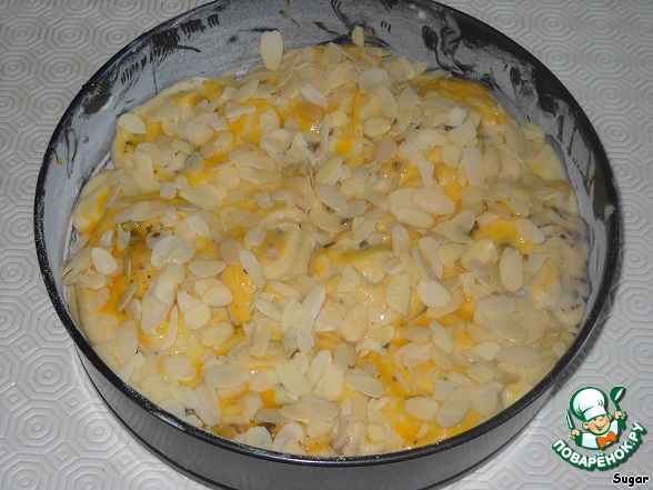Смазываем желтком, посыпаем лепестками миндаля (если есть, это не обязательно)