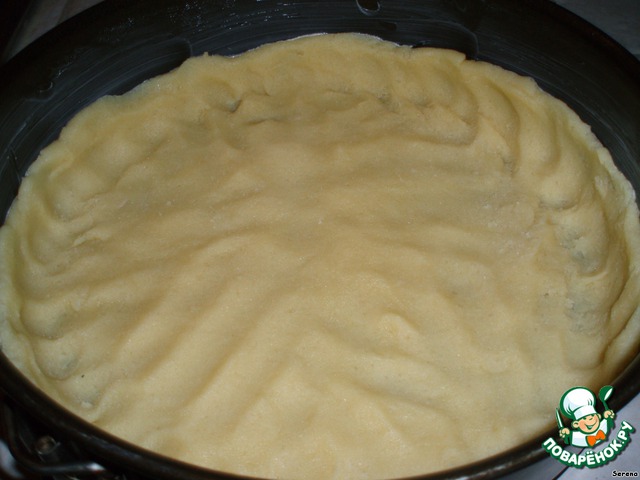 Обмазываем форму сливочным маслом и выкладываем тесто, не забывая делать бортики.