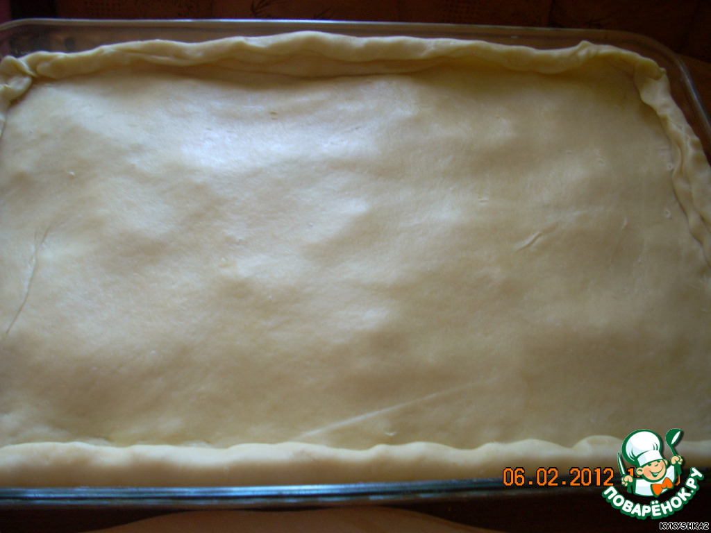 Выкладываем пласт в форму, обязательно формируя бортики.