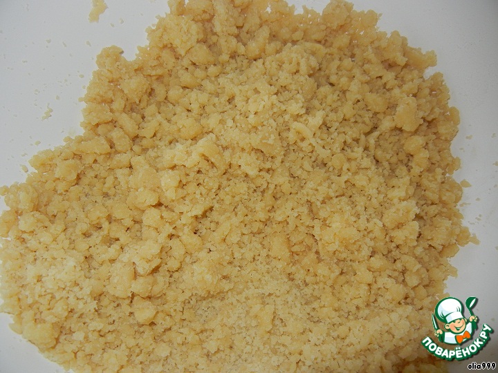 Перетираем сливочное масло с мукой, добавляем очень холодной воды и замешиваем тесто. Отправляем тесто в холод на 30 минут.