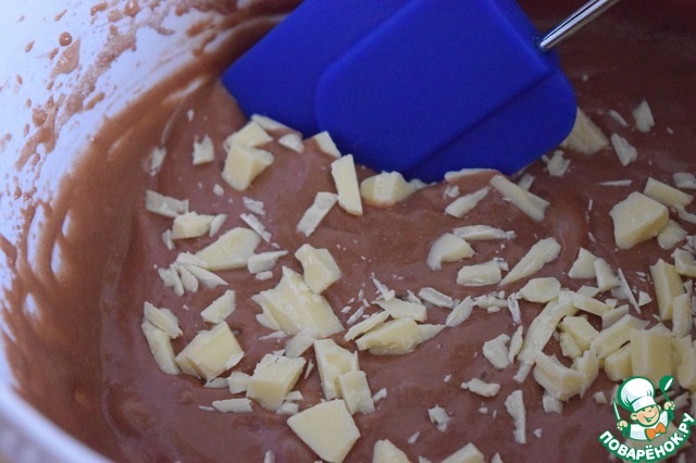 Добавляем порубленный шоколад в тесто и перемешиваем.