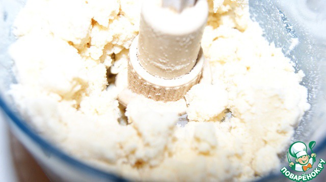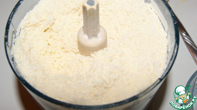 Поместить в блендер вместе с мучной смесью и пробить до образования крошки.